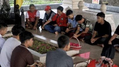 BLITAR – Seluruh pemain dan official Tim Banteng Jatim U-17 melakukan ziarah ke Makam Bung…